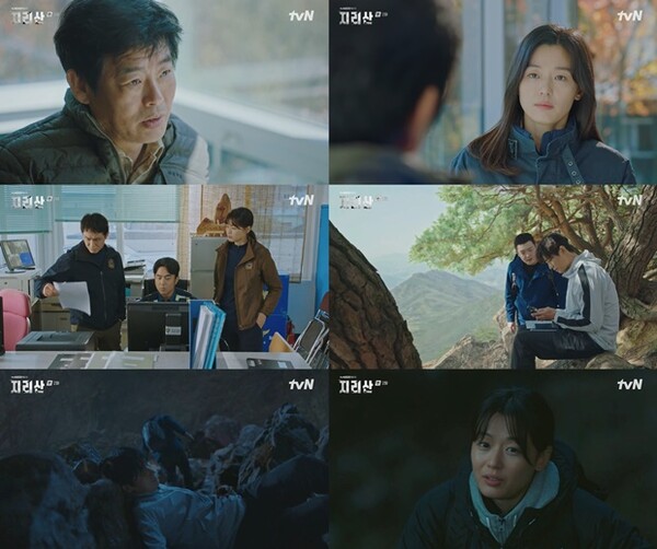 미스터리 역시 본격적인 시작을 알렸다. 강현조가 칼에 찔린 채 산을 헤맬 때, 길을 알려주기 위해 나무에 매다는 길잡이 리본을 따라갔지만 그 끝엔 아찔한 절벽이 있었다며 “마치 일부러 길을 잃게 만들려고 해놓은 것처럼”이라고 의심한 것. 특히 2018년이었던 이 사건에 등장한 리본이 2020년 또 다른 조난사건에서도 포착된 터. 경찰 김웅순(전석호)을 찾아가 수상함을 조사하던 서이강은 뜻밖에도 분소장 조대진(성동일)의 자리에서 피 묻은 리본들을 발견, 사정없이 흔들리는 그녀의 눈빛은 시청자들까지 혼란에 빠트렸다.