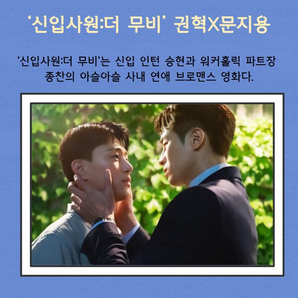 '신입사원:더 무비'는 신입 인턴 승현과 워커홀릭 파트장 종찬의 아슬아슬 사내 연애 브로맨스 영화다.