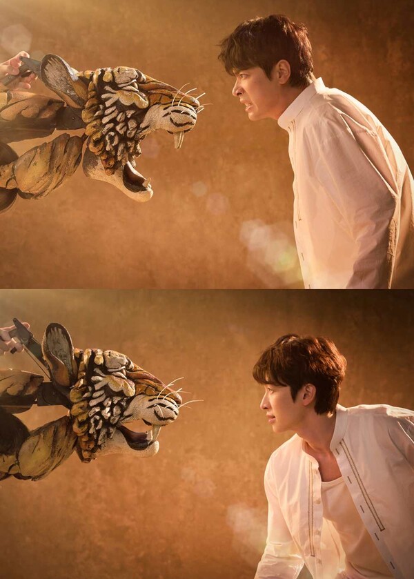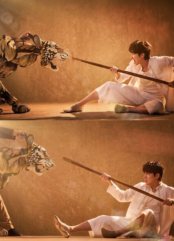 '라이프 오브 파이' 한국 초연이 (제작: 에스앤코) 12월 2일 개막까지 단 6일만을 남겨두고 파이와 벵골 호랑이 리차드 파커의 캐릭터 포토를 공개했다. 금방이라도 달려들 것 같은 긴장감 넘치는 대결의 순간을 담아내며 곧 무대로 만날 두 배우, 박정민, 박강현의 강렬한 연기를 기대케 한다.