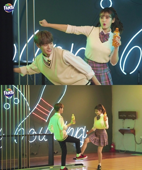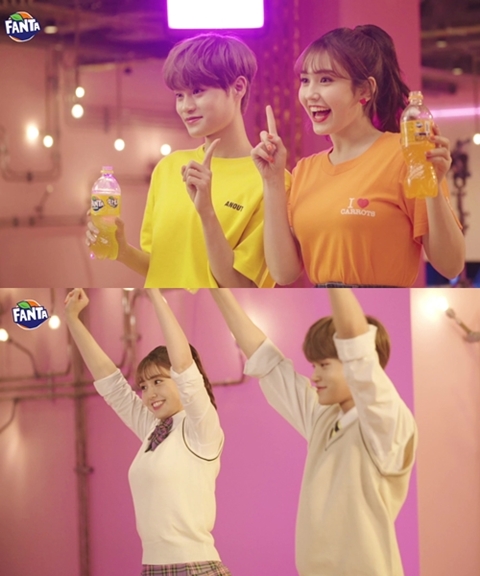 환타의 광고 모델로 발탁된 전소미, 이대휘는 상큼함에 본능적으로 끌리는 ‘환타 본능’을 콘셉트로 흥 넘치는 상큼발랄한 모습을 보이며 신나는 분위기를 전달했다.