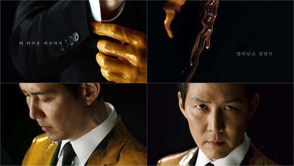 포스터와 함께 공개된 티저영상은 황금빛 액체와 검정 슈트의 색감 대비가 긴박하게 진행되는 배경음악 속에서 더욱 생생하게 담겼다. 셔츠의 소매를 다듬는 와중에도 그의 온몸을 타고 흘러내리는 금빛의 향연 속에 무엇보다도 단단하게 전해지는 장태준의 목소리는 더러운 세상 속에서 치열하게 생존하려는 그의 굳은 의지를 드러낸다. 정면을 응시하는 그의 마지막 눈빛은 그 어느 때보다 차갑고 날카롭다.