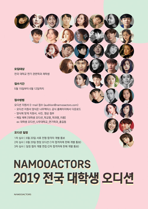 ‘2019 전국 대학생 오디션’을 통해 나무엑터스를 이끌어갈 새로운 얼굴을 찾을 예정이다. 이번 오디션은 분기별로 진행되는 기존 정기 오디션과는 달리 1년에 한차례만 진행된다. 지난해에는 90여 개 학교에서 500명이 넘는 지원자가 몰리며 뜨거운 관심을 샀다.