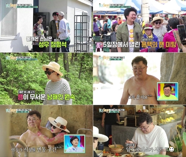 박원숙은 과거 ‘남해 자연인’을 검증하기 위해 자신을 찾아왔던 윤택과 반갑게 재회했다. ‘나는 자연인이다’의 인기 성우 정형석과 함께 남해를 다시 찾은 ‘머슴 1호’ 윤택은 “이번에는 하고 싶은 걸 따르겠다”는 박원숙에게 등산을 제안했다. 세 사람은 먹거리를 사기 위해 삼천포 5일장에 도착했고, 윤택은 전통시장에서 아이돌급 인기를 자랑해 ‘남해 슈퍼스타’ 박원숙에게 때 아닌 굴욕을 안겼다.