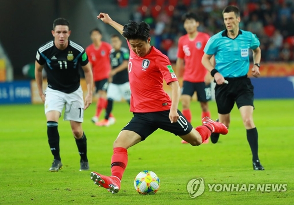 2019 국제축구연맹(FIFA) 20세 이하(U-20) 월드컵에 출전한 우리 대표팀이 아르헨티나를 2대 1로 꺾고 16강에 올랐다.