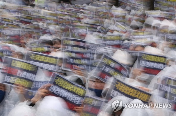 7일 서울 국회의사당역 인근에서 온라인카페 '국공립유치원 위탁경영 반대연대'를 중심으로 모인 예비유치원교사 1000여명(주최 측 추산)이 박찬대 더불어민주당 의원이 대표발의한 유아교육법 개정안 철회요구 집회를 열었다. 이날 집회에는 현직교사와 학부모도 참여했고 참여자들은 우의 안에 검은 옷을 맞춰 입었다.