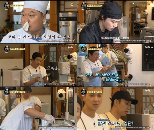 7일 방송된 tvN 예능프로그램 ‘강식당2’(연출 나영석, 신효정)에는 강호동의 코피에 한숨을 내쉬는 이수근의 모습이 그려졌다.