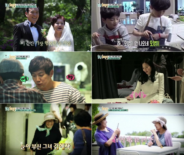 류진은 친구들과 여행을 떠난 아내 이혜선을 대신해 ‘찬브로’ 찬형, 찬호 형제와 집안일을 도맡았다. 며느리의 부재를 모르고 찾아온 류진의 아버지를 위해 삼부자는 각각 닭볶음탕, 김치전, 된장찌개를 도맡아 요리 대결에 나섰고 “2000년 이후 요리는 처음”이라던 류진은 기대 이상의 실력을 선보여 훈훈한 ‘삼대 식사’가 이뤄졌다. 한편 여행지인 강릉에 도착한 이혜선은 남편 류진이 ‘지인 찬스’로 완성한 촛불&케이크 이벤트에 놀라워했다. 연애 시절을 똑같이 재현한 이벤트에 이혜선은 감동을 드러냈지만 이내 ‘차력사’에 빙의해 바쁘게 촛불을 꺼 웃음을 안겼다.