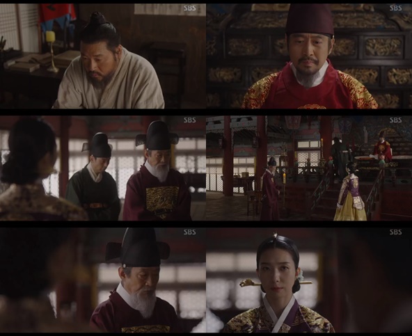8일 방송된 SBS ‘녹두꽃’에서 흥선대원군(전국환)을 만난 백이강(조정석)이 전봉준(최무성)의 서찰을 전달한다.