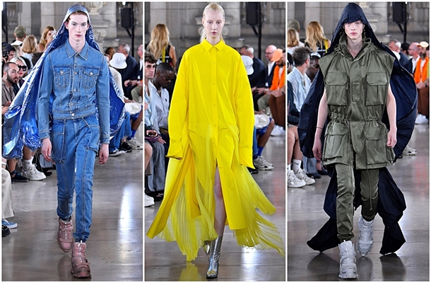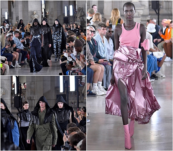 대표적으로 상하의가 결합된 점프수트, 팬츠의 뒷 포켓과 연결된 아우터, 힙색과 연결된 스커트 및 파카 등 다채로운 결합과 분해를 통해 준지다움을 표현했다. 또 기존에 볼 수 없었던 옐로를 비롯해 라이트 핑크, 블루 등을 포인트 컬러로 활용했고, 메탈릭 소재를 다양한 아이템에 적용해 신선함을 더했다.