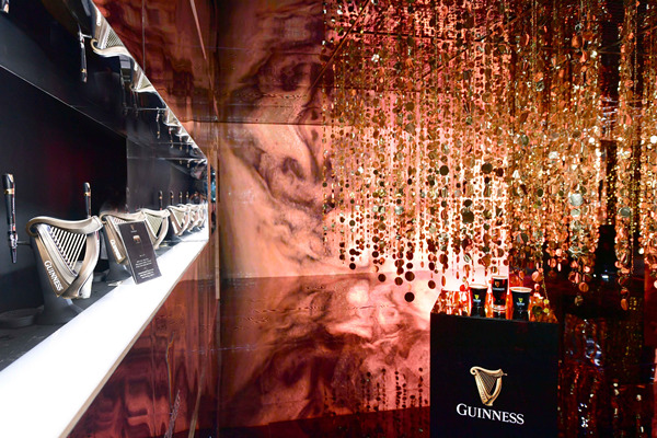 ‘서징’은 기네스 맥주를 따르고 난 뒤 기포가 아래로 내려앉는 듯한 대류현상이다. 이외 정면의 대형 미디어 월에 기네스 미디어아트를 전시하는 등 브랜드의 감성을 느낄 수 있도록 구성했다.