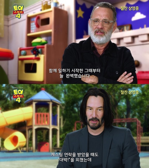 톰 행크스와 키아누 리브스가 ‘토이 스토리 4’에 대한 애정을 드러냈다.