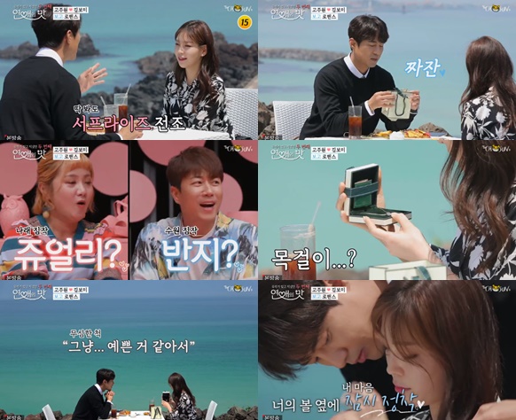 27일 방송된 TV조선 ‘연애의 맛’에서 고주원과 김보미가 제주도 로맨스를 펼쳤다. 이날 고주원은 “10초만 눈을 감아봐요”라고 말해 김보미를 설레게 했다.