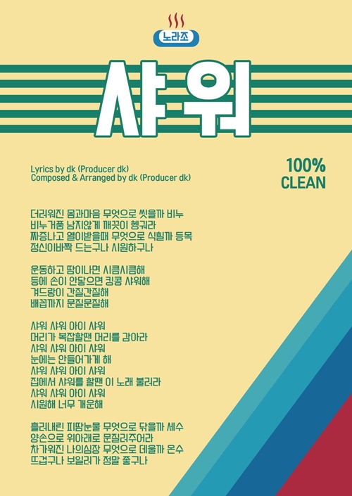 한편 노라조의 신념이 담긴 신곡 '샤워(SHOWER)'는 오는 17일 정오(낮 12시) 각종 온라인 음원 사이트를 통해 발매되며, 이날 노라조는 새 싱글 발매를 기념하는 쇼케이스도 개최한다.