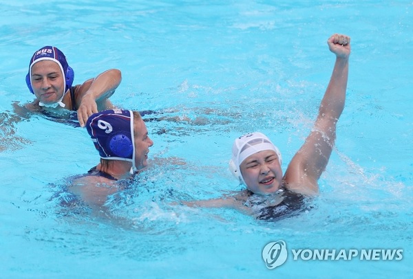 한국 여자 수구대표팀이 공식경기 첫 골을 기록했다.