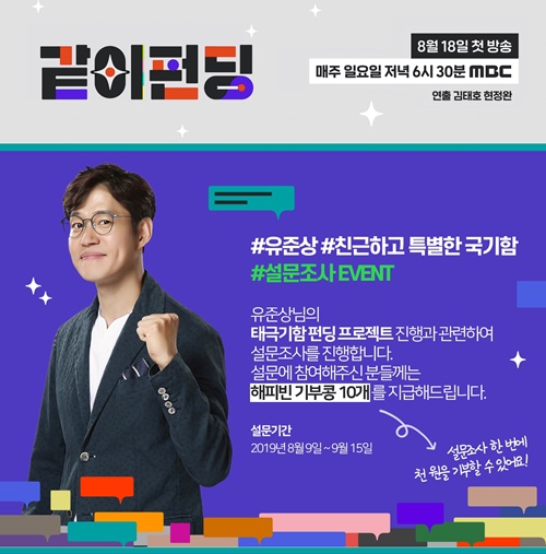 18일 MBC ‘같이 펀딩’이 첫 방송된 가운데, 유준상의 태극기함 프로젝트가 폭발적인 관심을 받고 있다.